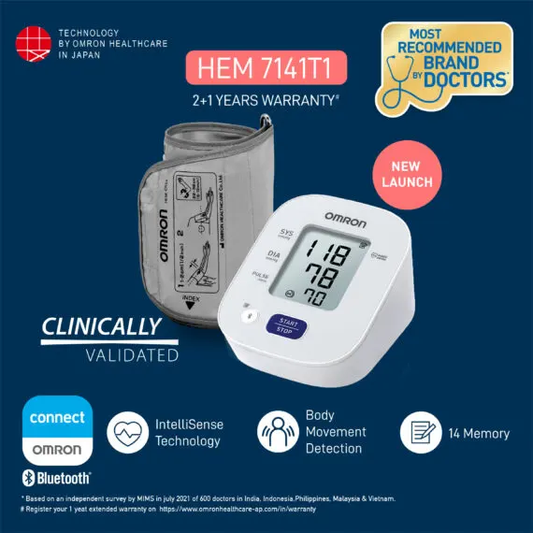 Omron HEM 7141T1 Digital Blood Pressure Monitor With Bluetooth & Body Movement Detection CWG Technology