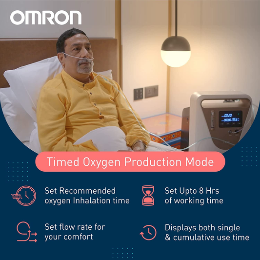 Omron Oxygen Concentrator Machine With 5 LTR Per Minute Capacity & Up To 96% Oxygen Concentration Purity With 4 Safety Alarms, White Color