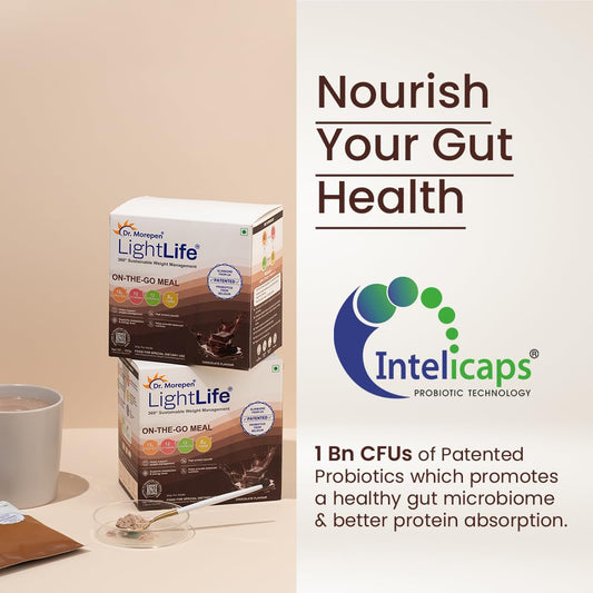 Dr. Morepen LightLifeĀ® On-The-Go Meal ā Chocolate (300g) Complete Meal Replacement | SlimbiomeĀ® | High Protein | Weight Management Formula