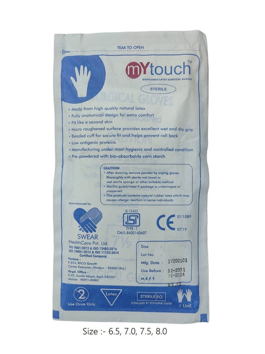 Mytouch Disposable Latex Surgical Gloves Sterile Pair (Two Gloves)