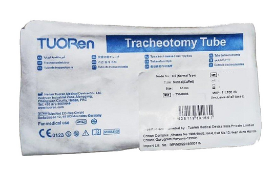 Tuoren Straight Cuffed Tracheotomy Tube Size 6.5 mm, 1 Pcs