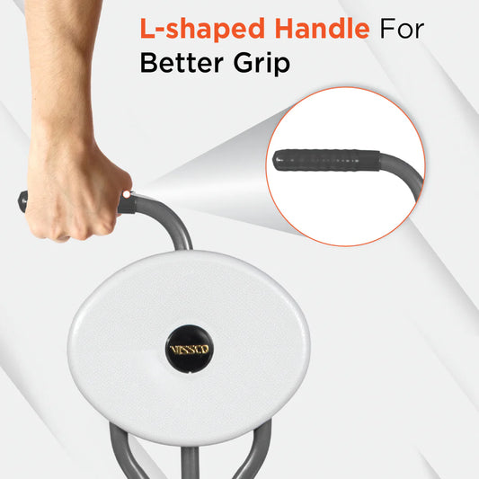 Vissco Avanti Walking Stick with Seat – PC 0944 | L-Shaped Handle, Lightweight, Foldable, Durable Rubber Shoe (Grey)