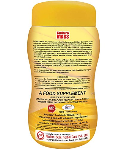 Endura Mass Weight Gainers/Mass Gainers (500gm, Banana)
