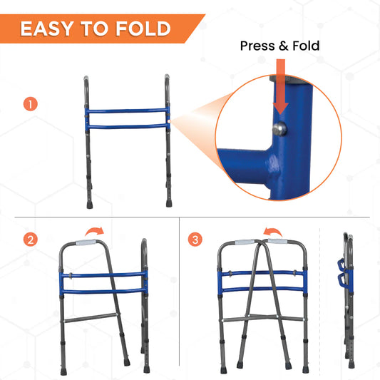 Medipedic Walker Plain – Double Bar PC 9934 | Lightweight Foldable Walker for Elderly & Patients | Universal Size