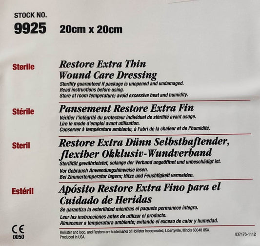 Sterile Restore Extra Thin Wound Care Dressing 20 X 20 CM 9925