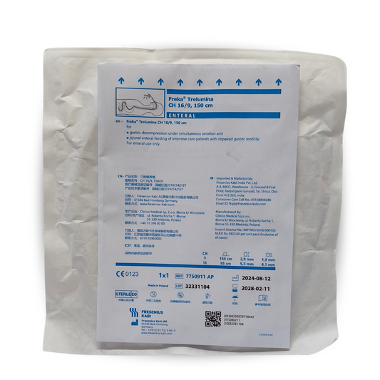 Freka Trelumina CH 16/9, 150 cm – Triple Lumen Enteral Feeding Tube | For Gastric Decompression & Enteral Nutrition