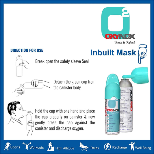 OXYNOX Relax & Refresh 9 Ltr. Pure Natural Oxygen Can | Portable Non-Medicinal Supplemental Oxygen for Energy, Sports & High Altitude | Made in India