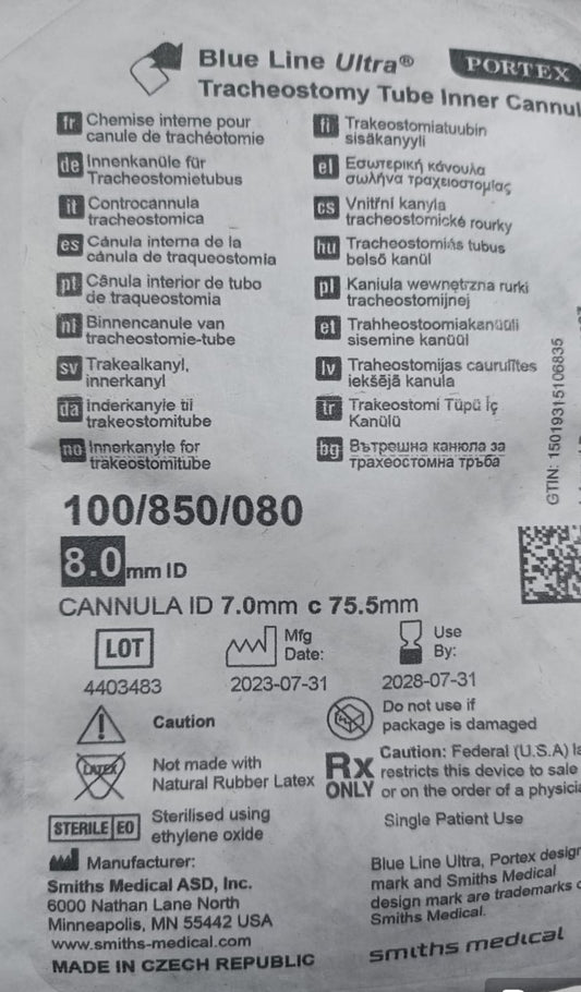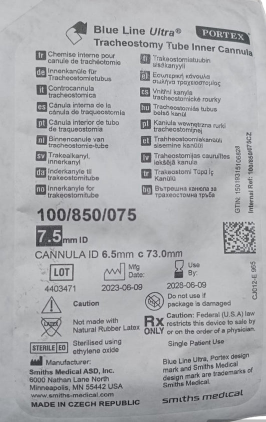 Portex Blue Line Ultra 7.5mm Inner Cannula Plain Tracheostomy Tubes
