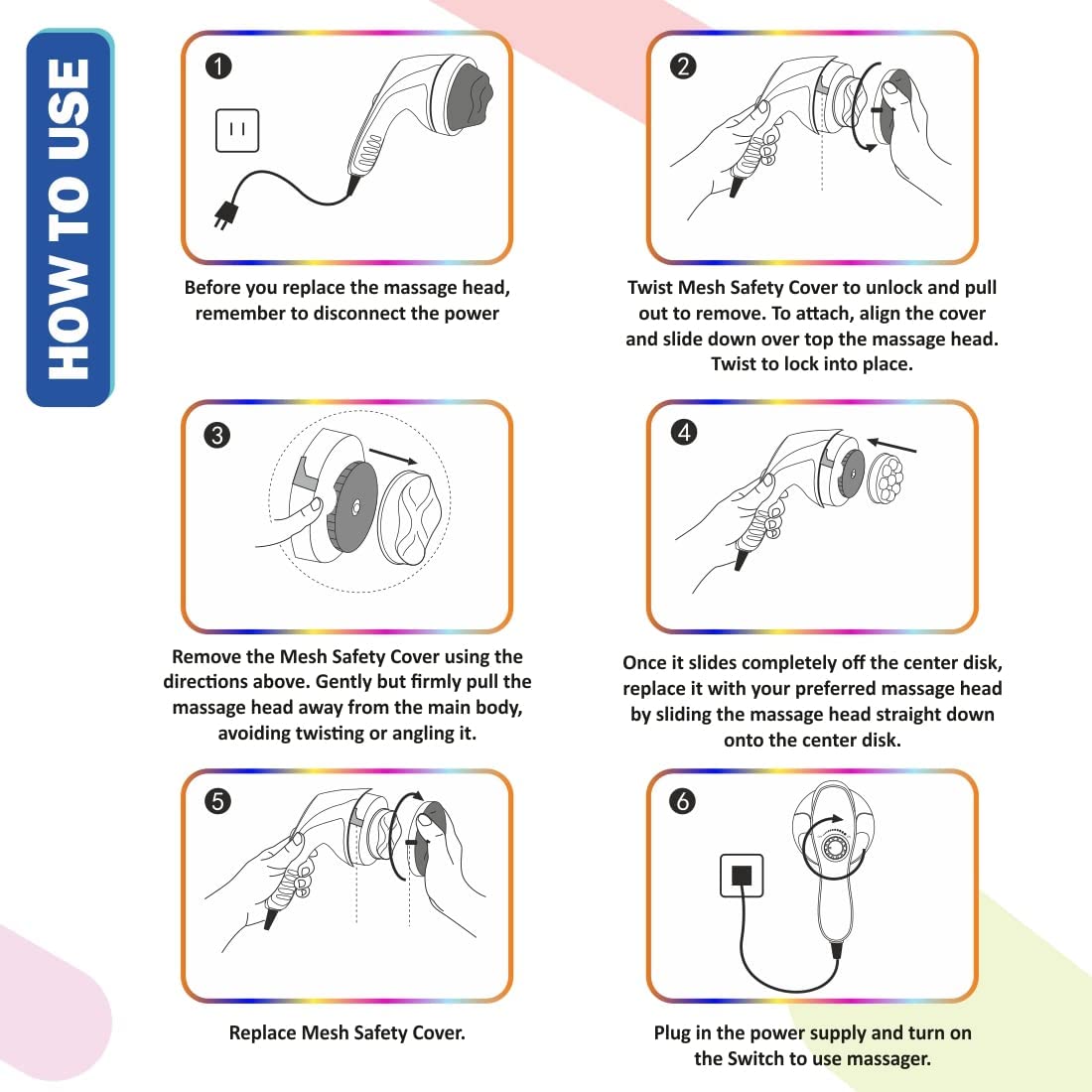 Accusure Handheld Full Body Electrical 4 Head Massager PL-604B Features: