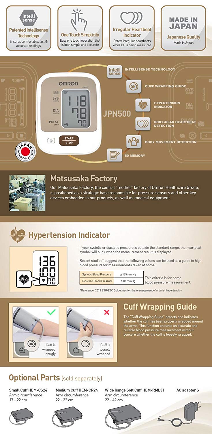 - Omron patented IntelliSense Technology detects irregular heartbeat.