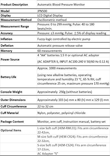 | Measurement Range | Pressure: 0-299 mm Hg, Pulse: 40 to 180 bpm |