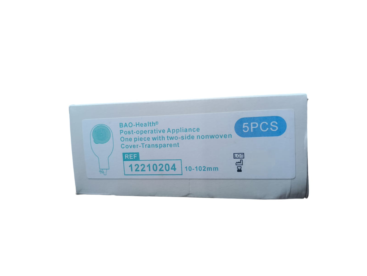 The BAO Health Post Operative Appliance is specially designed for post-surgical care, providing comfort and convenience. This *one-piece appliance* features a *transparent pouch* for easy monitoring, and a *two-sided non-woven cover* for added softness and discretion. With a *cut-to-fit flange (10-102mm)*, this appliance ensures a secure and custom fit, making it ideal for users requiring a flexible, post-operative solution.