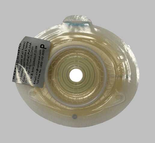 - Transparent and flexible adhesive with belt ears securely fits around the stoma. Thus, it provides more comfort.