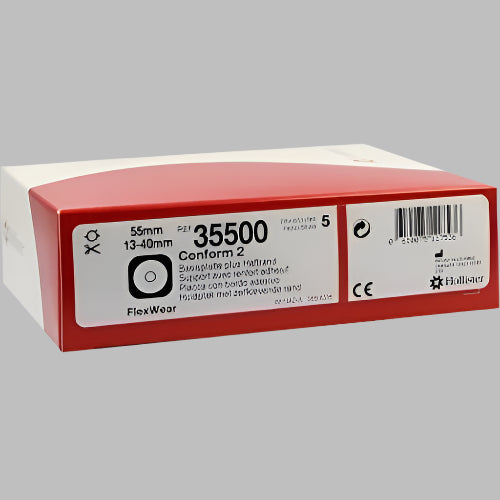 Best conform 2 Hollister 35500 55mm Price, Support FlexWear barrier provides excellent adhesion to the skin and is designed to be worn for more than one day. It features an adhesive border to help conform to shape. The skin barrier has an integrated floating flange, which allows fingers to be placed under the flange to help minimize pressure on the abdomen when attaching a pouch.