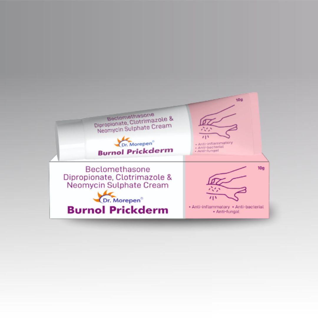 Dr. Morepen Burnol Prickderm Cream is a fast-acting, skin-cooling formula specially designed to relieve prickly heat, skin rashes, redness, and irritation caused by excessive sweating and heat. Enriched with skin-soothing ingredients, it helps provide instant cooling, calming effect, and relief from itching, especially in summer and humid conditions.