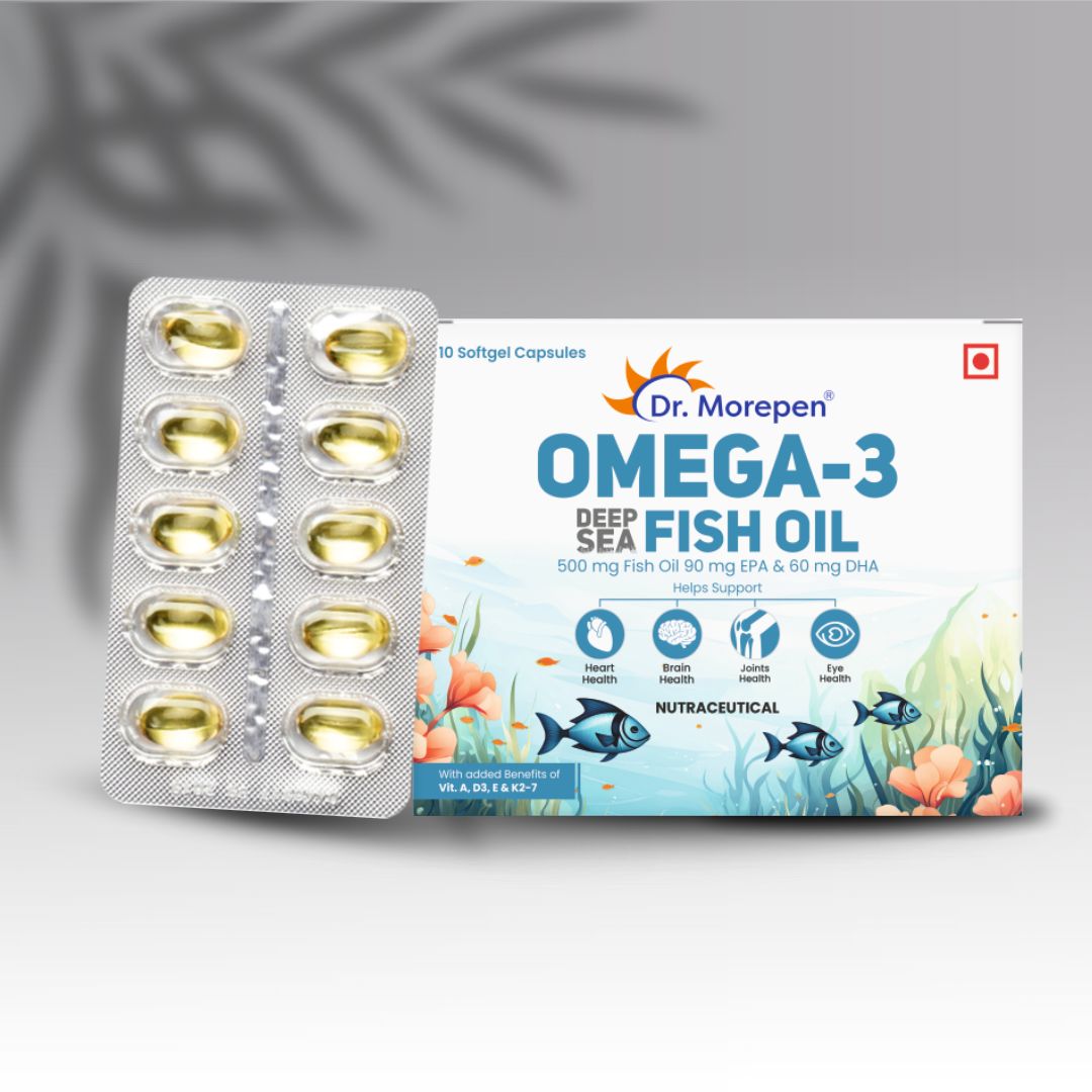 Dr. Morepen Omega-3 Deep Sea Fish Oil – Heart, Joint & Brain Health Softgel Capsules 500 mg (30 Cap.)