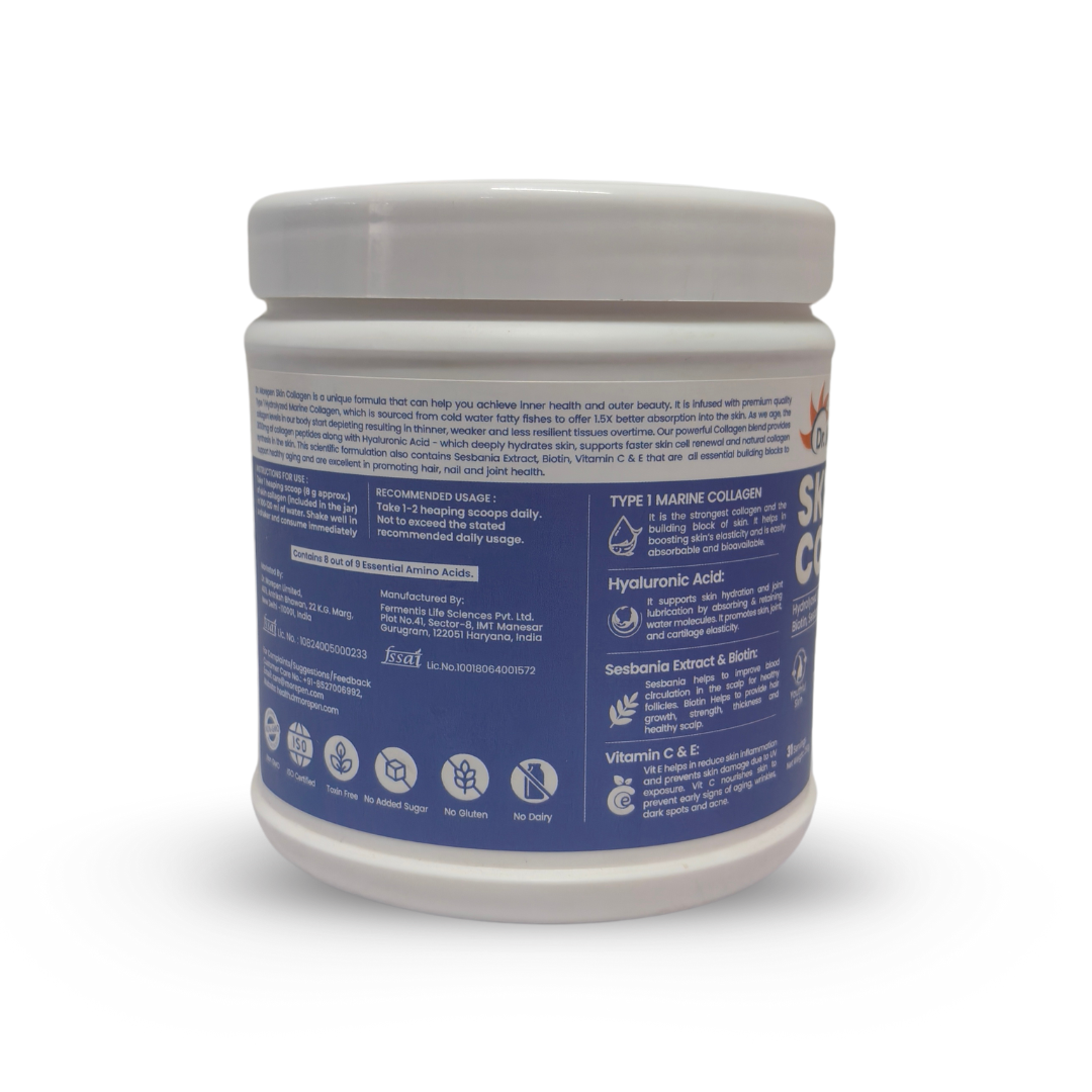 Boost your skin’s natural glow, improve hair strength, and support joint health with Dr. Morepen Skin Collagen – a premium blend of Hydrolyzed Type 1 Marine Collagen, Hyaluronic Acid, Biotin, and Vitamins C & E. Designed for men and women, this collagen supplement helps reduce signs of aging like fine lines, wrinkles, dryness, and dull skin – all in a delicious pineapple flavour you’ll enjoy daily.