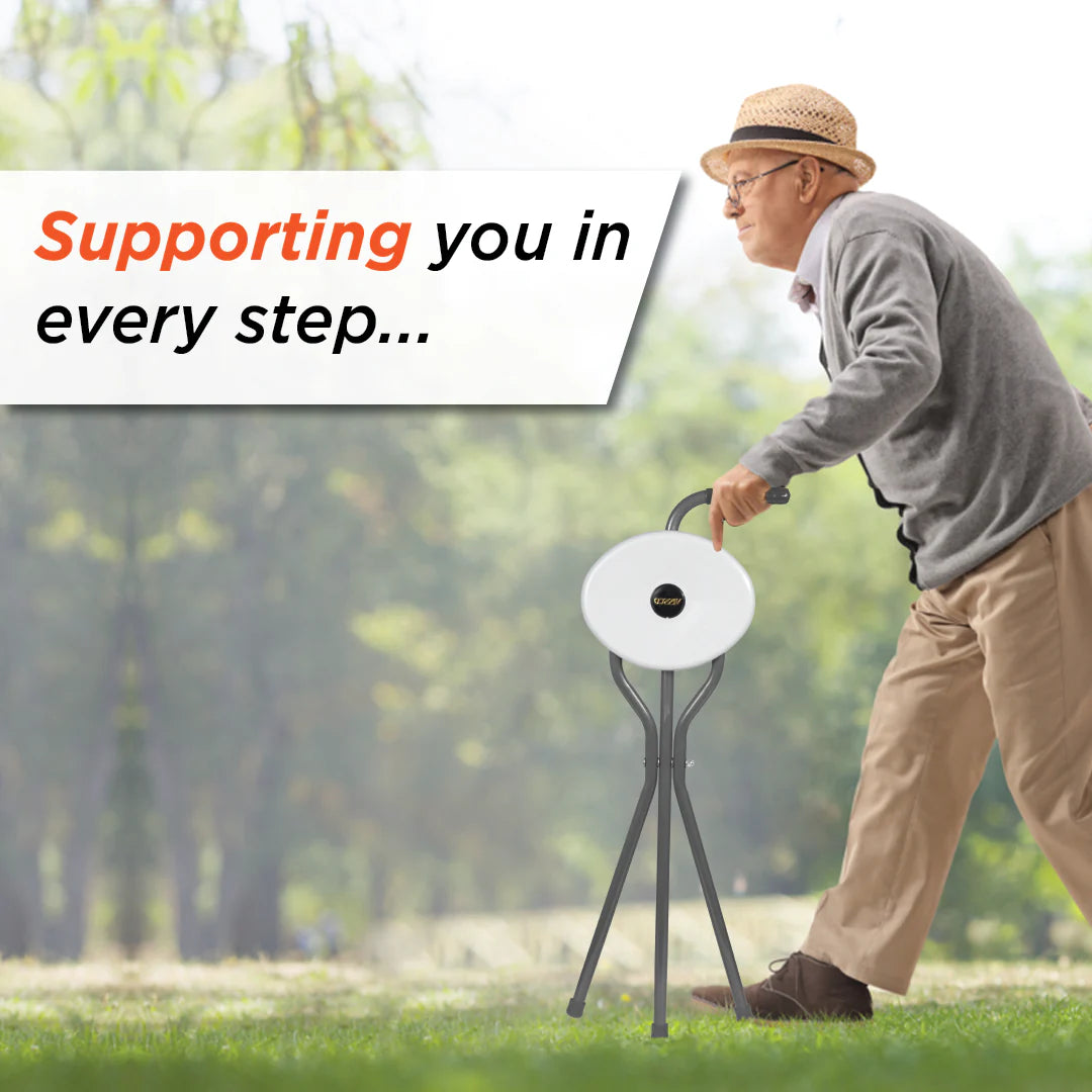 ✔️ Walking Stick with Seat – Dual-purpose design for walking and seated rest