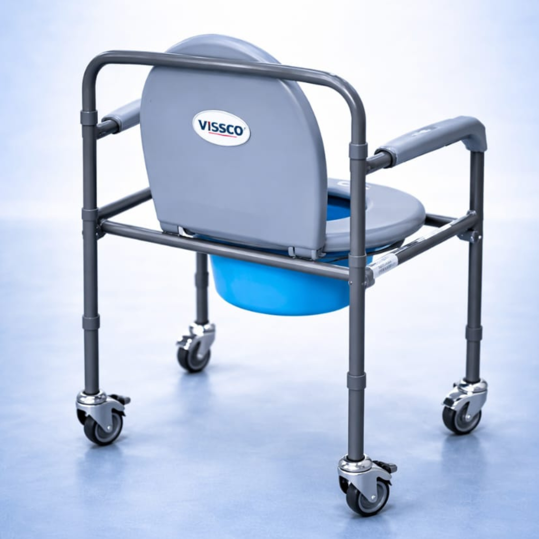 The Vissco Comfort Folding Commode with Wheels (PC 0941C) is a versatile and practical mobility aid, offering ease of use, comfort, and safety, making daily toileting needs more accessible and convenient.