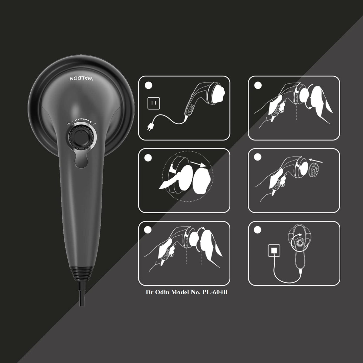 Waldon Electrical Body Massager with interchangeable 4 Massager Heads PL-604B Dr Odin